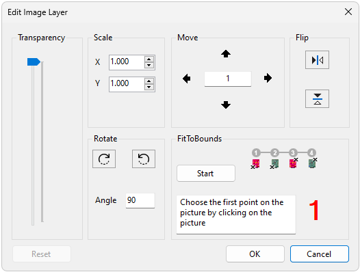allows the image to be fitted to the image bounds. Click the start button to begin the fitting process and follow the displayed instructions.