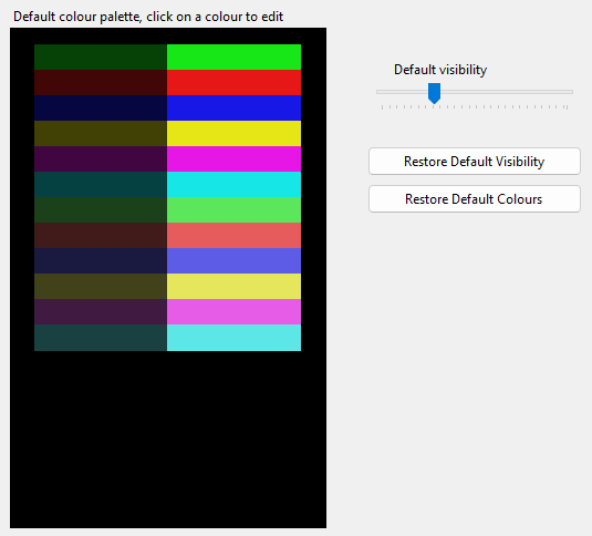 There are also two buttons which restore the visibility and the colour palette back to XJTAG's defaults.