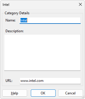 - Right click on the category you want to edit and select Edit.... The Edit Category dialog (shown below) allows you to change the name, description and URL of the category. Alternatively the name of a category can be changed by left-clicking on the selected category, this will enable the editing of the name in the category tree, press Enter when you have finished editing the name of the category.