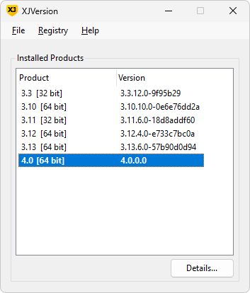 XJVersion displays all the available versions of the system that are currently installed, as the example below: