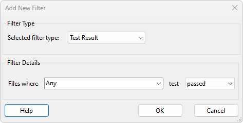 - Test Result - filters based on the result of either a chosen test or any test.
