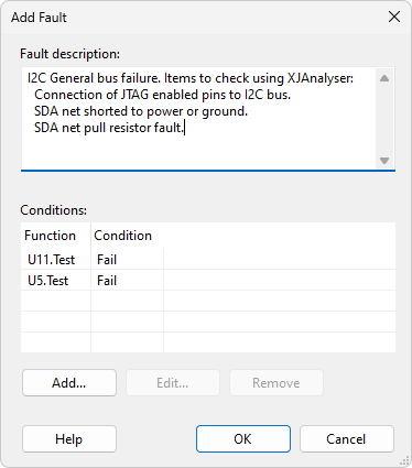 - Select the Add... button to configure the conditions which will trigger the Fault Dictionary to display a different message.