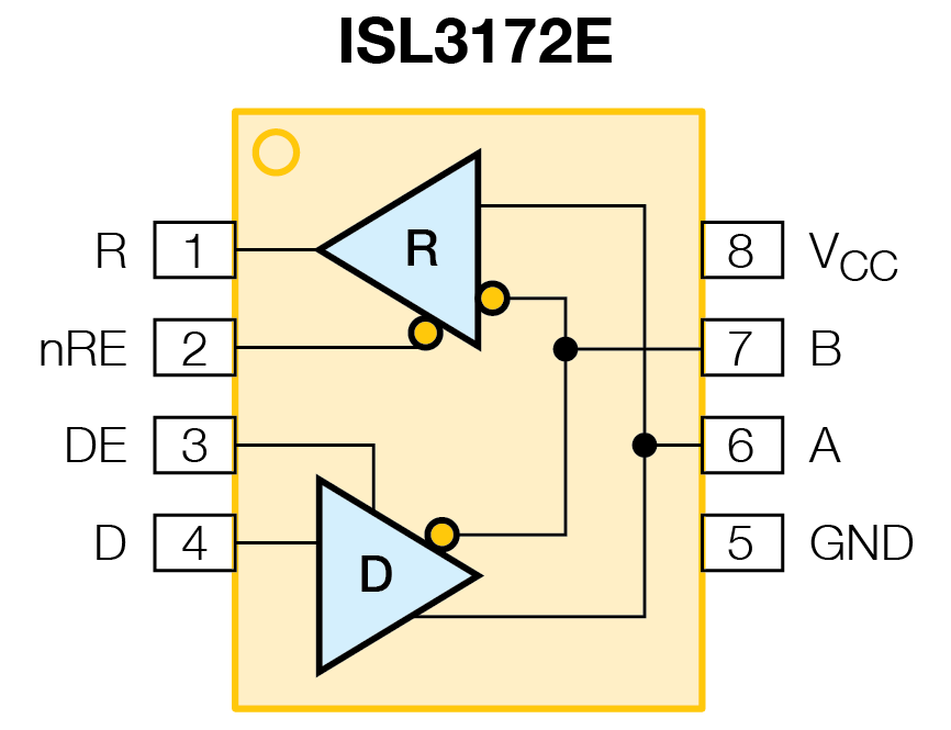 You are now going to create a Logic Definition that can be used for each of the two RS485 transceivers on the XJDemo board, U4 and U7. The logic symbol and pinout for this device type are shown below: