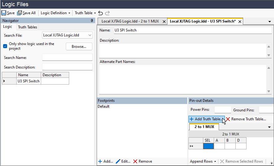 Figure 65: Adding a Truth Table to a Newly Created Logic Definition