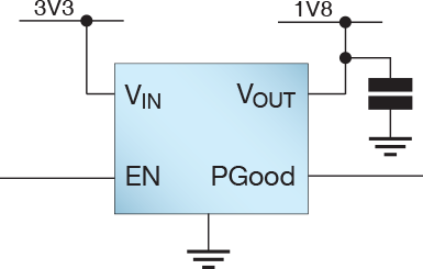 The next step up in complexity from a FET switch is a regulator that can be turned on via an Enable pin. When deciding how to categorise a regulator, the same considerations of access and whether to allow it to switch during the connection test apply as they do for the FET power switch described above, so that section should be read before continuing.