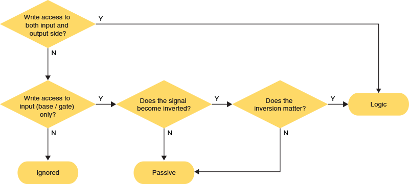 A transistor may be categorised as Passive, Logic, or Ignored as shown in Figure 41, and the sections below give an example for each.