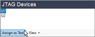 To categorise a JTAG IC as a Test device, select it in the bottom-left JTAG Devices section and click Assign as Test: