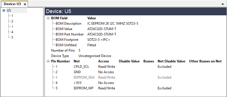 - Explorer shows a Net Disable Value of Excluded for the accessible pins in the example of Figure 20 because the device hasn't yet been categorised, and Connection Test will not drive nets connected to an uncategorised device.