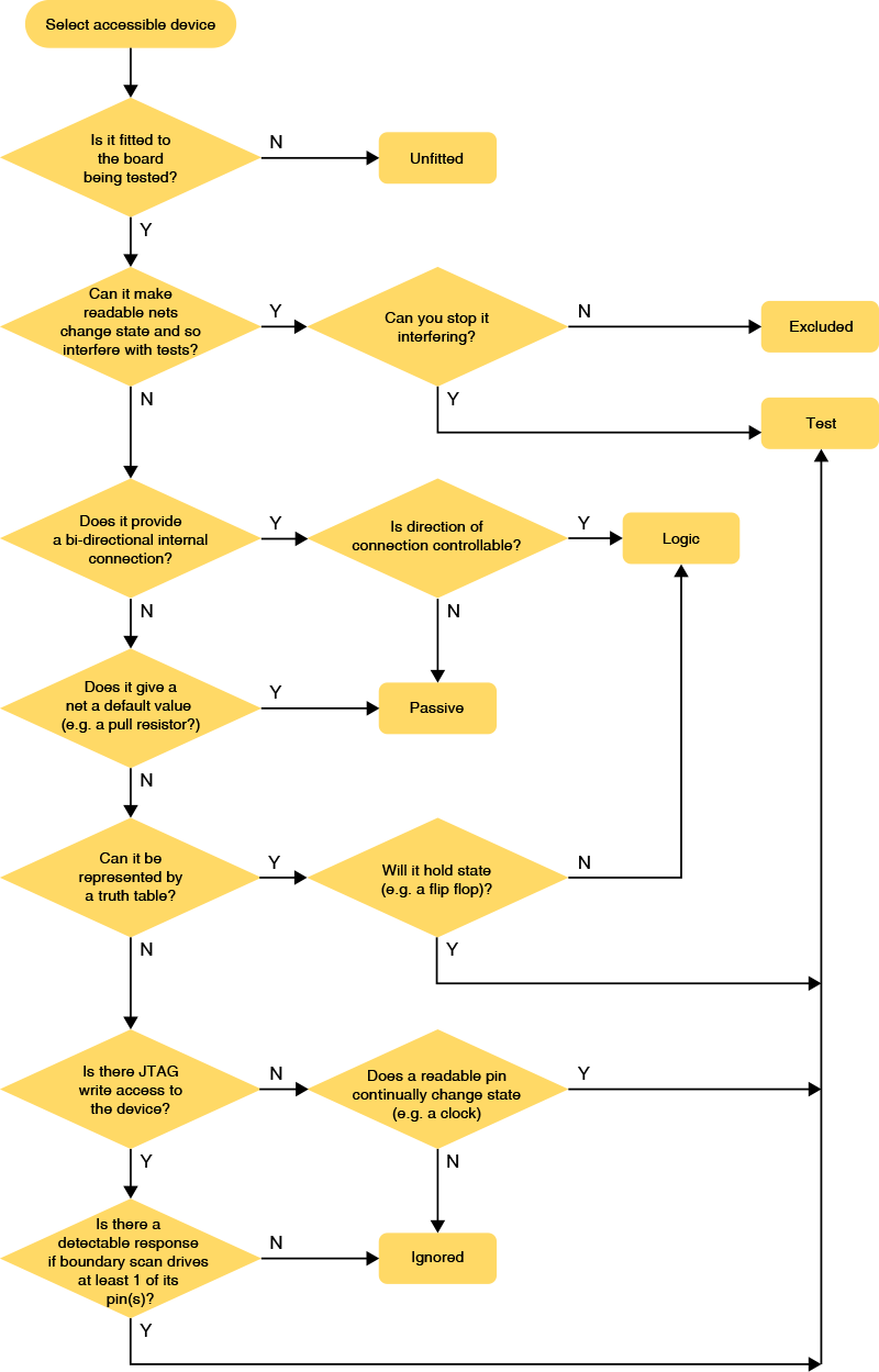 Accessible devices should be assigned to one of the six categories described below. Although a circuit can be tested with accessible devices left uncategorised, categorising them will give the best test coverage.
