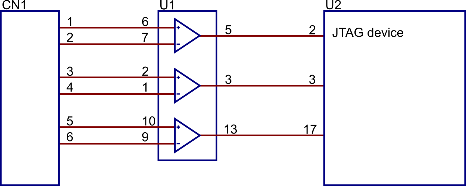 The advantage of categorising a device as Logic is that the system will then control it automatically and know how to deal with the unidirectional nature of the signals. For example, Connection Test will automatically test a logic device if there is JTAG access to its inputs and outputs; the test will also know not to drive against an output. Outside of the connection test, categorising logic can greatly simplify the creation of XJEase tests because XJDeveloper can automatically work out how to use the logic to gain access to pins on other devices, and will take any signal inversions into consideration. It can also lead to increased test coverage because XJDeveloper can use the logic inputs to control other nets in the circuit, thereby extending test access.