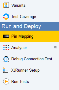 Dynamic chains are set up in XJDeveloper's Pin Mapping screen, located within the list of screens under the Run and Deploy header: