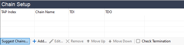 To perform an automatic search for the JTAG chain(s), click Suggest Chains... in the Chain Setup section: