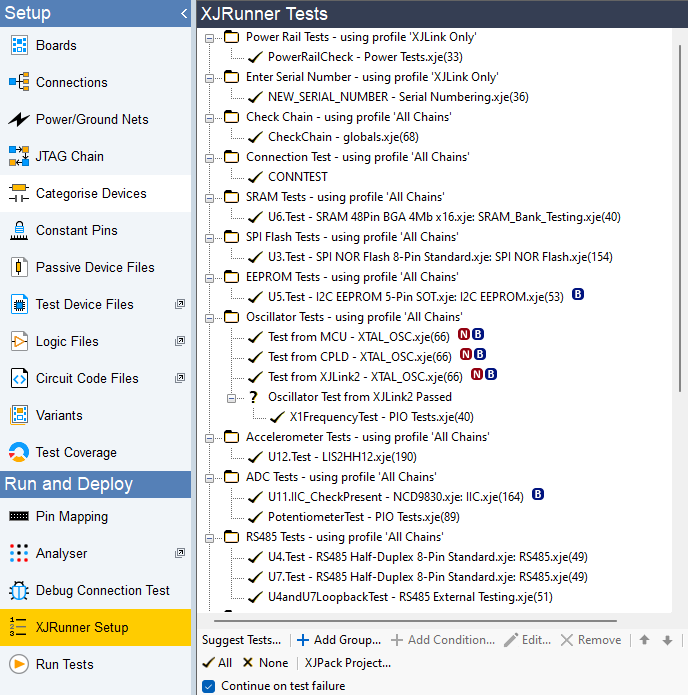 Once the file is created, contents such as image files for programming, layout, schematic, and the XJEase code for each test cannot be changed. This has the advantage that any programming files included in the XJPack file cannot accidentally be altered: you are guaranteed that only those images will be used.