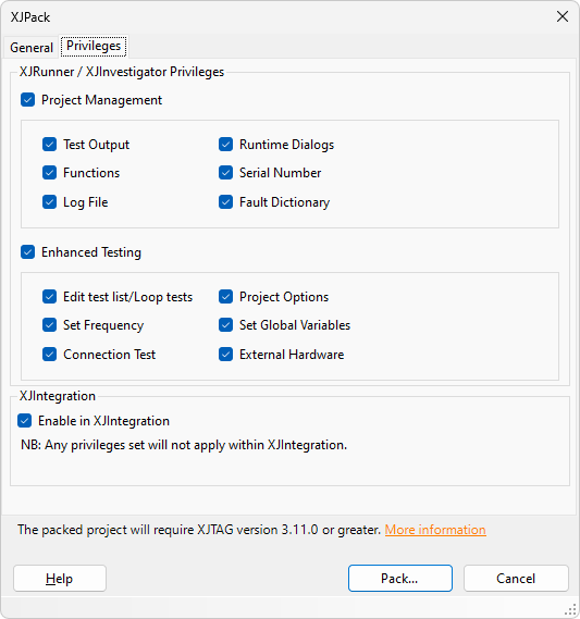 - Setting these permissions in an XJPack file requires XJTAG 3.12 or later.