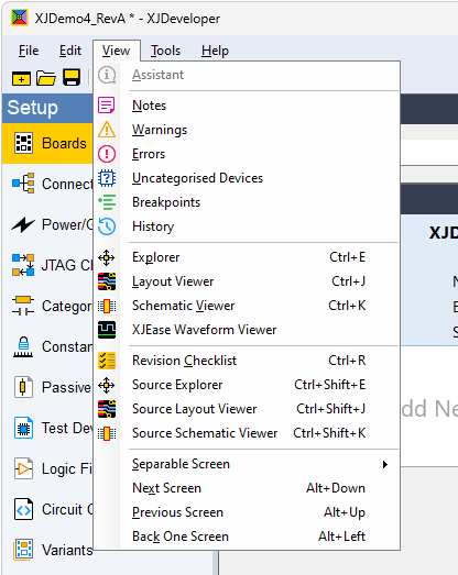- JTAG Chain - ensure that XJDeveloper knows what JTAG devices are in the revision, and how they are linked.