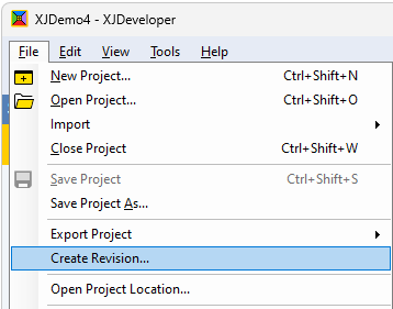 In the File menu, select Create Revision... to start the process, as shown: