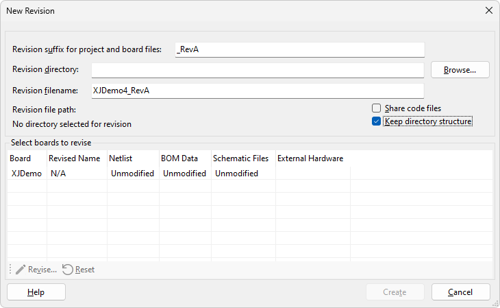 In the upper part of the dialog in Figure 2, you can choose how the new project will be saved, specifying the filename and location, plus whether files are shared with the previous version. By default, the new project for the revision will be named after the original version, with a revision suffix added, however you can change this suffix to match your company's naming convention by editing the suffix field at the top. Alternatively, if the name change is more complex, simply remove the suggested suffix and specify the filename manually by typing the new name into the Revision filename field.
