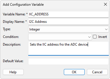 Clicking Add... opens the Add Configuration Variables dialog box: