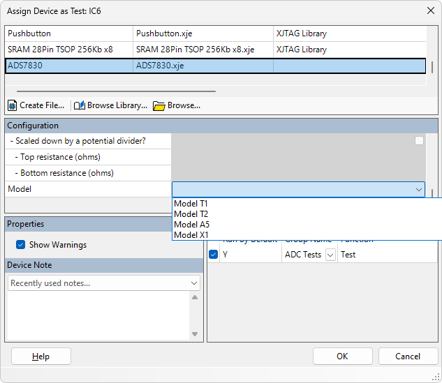 Figure 30: Configuring a Device in the Test Device Files Screen