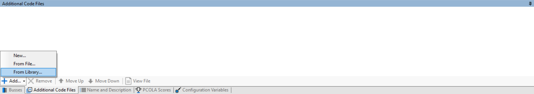 If a suitable additional code file does not already exist, a new one can be created: from the test device file; select the Additional Code Files tab as before, then click Add.... Within the drop down click New...: