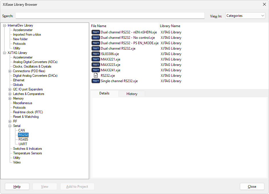 To view all available XJEase files rather than just those in the open project, use the XJEase library Browser as described below.