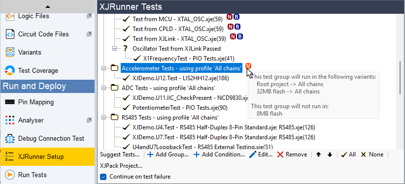 XJRunner Setup screen. However, it will be omitted from that variant's test list on the Run Tests screen and in XJRunner / XJInvestigator.