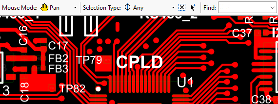 To search for a net, device, or pin by its name, type into the Find: box at the top of the screen. The syntax for a pin when using this search box is <device name>.<pin>: for example, U7.2 or U8.A3.