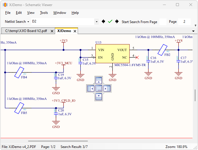 - Some CAD systems such as Altium embed bookmarks into the PDF file. If this type of file is being used, XJDeveloper will try to use this additional information to go directly to a net when it's clear that's what you're searching for, i.e. if Schematic Viewer was launched by clicking on a net in Connection Test output or by right-clicking a net in Explorer.