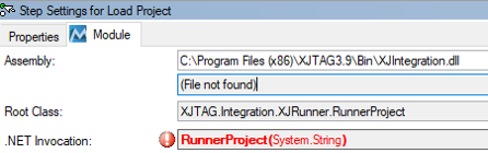 If the .NET example modules are used in a 64-bit version of TestStand, it will be necessary to adjust the path to XJIntegration.dll for each module to avoid it searching for files in the 32-bit program directory: