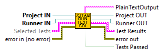 The RunTestCollection.vi has some additional terminals for selecting tests and retrieving output from the completed test run, as shown in Figure 10.