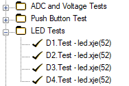 As an example, consider the test list of Figure 8, which includes a group of tests called LED Tests. To run the individual test D1.Test, it is selected by name, and RunTest() is then used to execute that test.