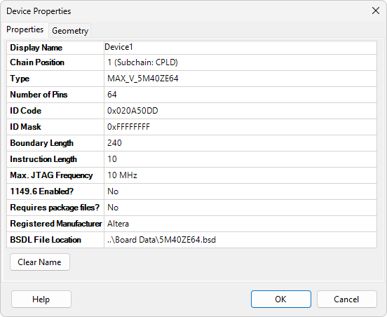 - BSDL File Location - displays the location and file name of the BSDL file for this device.