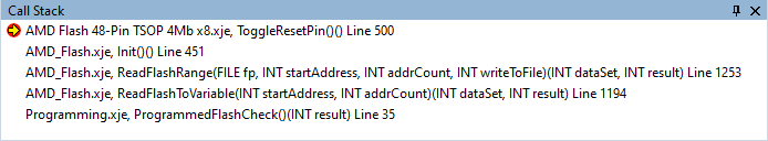 While execution is paused, the Call Stack window displays the XJEase function calls currently on the call stack.