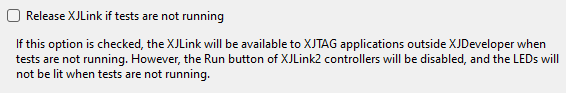 Checking the checkbox on this options pane makes XJDeveloper release the XJLink when tests are not being run, allowing other applications to use it, but disabling the Run button.