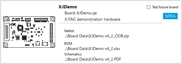 Boards without an ODB++ netlist will show a default icon showing the chosen netlist format. All boards have a Test fixture board checkbox that can be ticked to indicate the board is not the UUT but a board connected to extend test coverage. It is possible to reduce the fault information output by the connection test for boards marked as test fixture board by changing the "Reduce output for test fixture boards" setting in the Connection Test Settings.