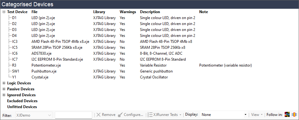 Note that devices in the JTAG Devices list can only be categorised as Test devices, and doing so does not remove them from the JTAG Devices list.