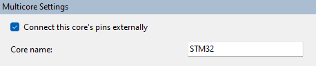 If the device is configured as a multicore device then an extra panel is visible allowing the name of the core to be set and whether the pins defined in the core's BSDL file are connected to the external pins of the device. Some multicore devices have cores in the JTAG chain whose pins are only connected internally. Only cores that are connected externally can have their TDO pin selected as the TDO pin of the device.