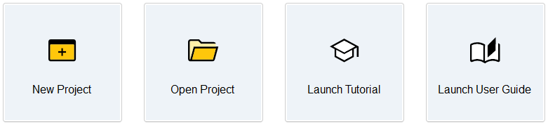 The Start Screen has buttons that enable you to create a new project, open an existing project and open the XJDeveloper Tutorial or XJTAG User Guide.