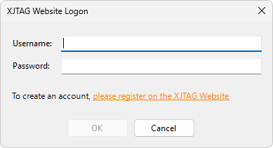 To access updates, you will need to register for an account on the XJTAG website. If you have an account, but do not know your password, it can be reset.