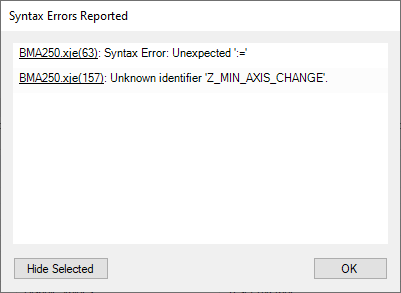 When checking device files, any included additional code files are compiled too. The current XJEase library is searched first and then the XJTAG XJEase library.