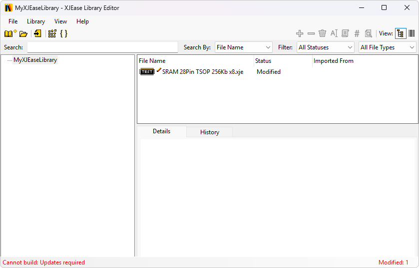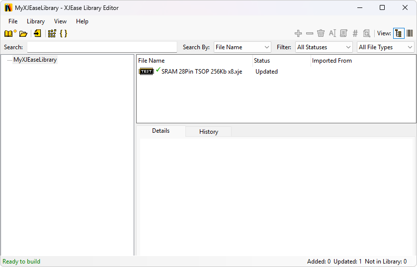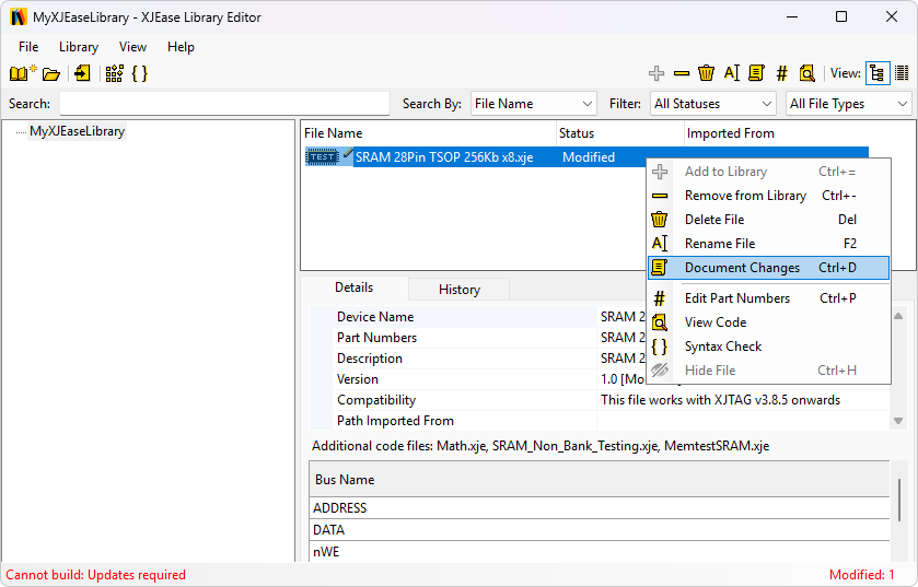 Once all modified files have had their changes documented, the status will update in the bottom left corner of the Library Editor window to show you are now ready to build. When you build your library, you will be prompted for a save location for the new build. Once your library is already in use in XJDeveloper, it is wise to overwrite the old build each time. This way the XJDeveloper library options don't require updating every time to point to your new path. Next time you open a XJDeveloper project containing files from your recently updated library you will be prompted to update any files that have changed.