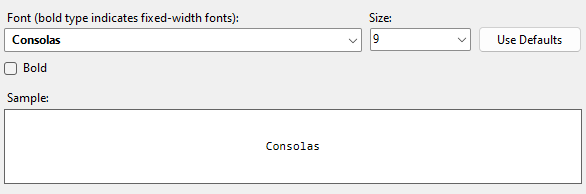 It is important to remember that some formatting may depend on using a fixed width font; these fonts are displayed in bold in the Fonts drop-down list.