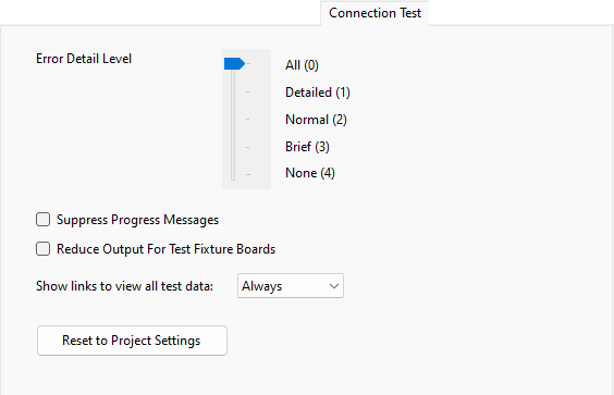 The Error Detail Level setting controls the output level of the connection test when run using the CONNTEST built-in function.