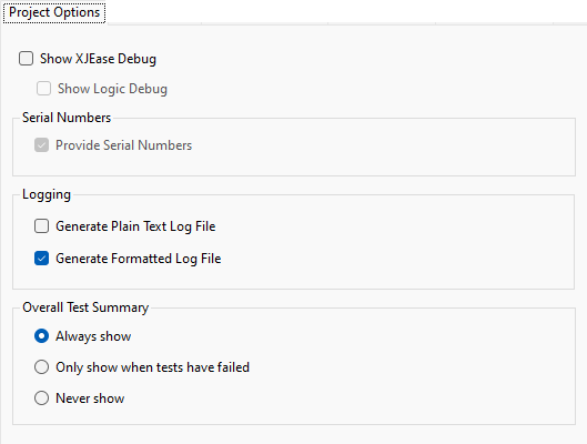 The settings in this dialog only have an effect on the current XJRunner session. When the project is re-opened, they will be reset to the project defaults.