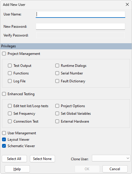 N.B. All new users have the Layout Viewer and Schematic Viewer privileges enabled by default.